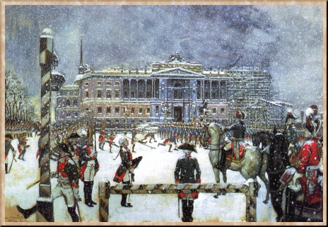 В творчестве Бенуа-художника решительно преобладала история. Две темы неизменно пользовались его вниманием: "Петербург XVIII - начала XIX в." и "Франция Людовика XIV". К ним он обращался в первую очередь в своих исторических композициях - в двух "версальских сериях" (1897, 1905-06), в широко известных картинах "Парад при Павле I" (1907), "Выход Екатерины II в Царскосельском дворце" (1907) и др., воспроизводя давно ушедшую жизнь с глубоким знанием и тонким ощущением стиля. Тем же темам, в сущности, были посвящены и его многочисленные натурные пейзажи, которые он обычно исполнял то в Петербурге и его пригородах, то в Версале (Бенуа регулярно ездил во Францию и подолгу жил там). Эти же темы господствовали в его книжных и театральных работах, которым он, как большинство "мирискусников", уделял не меньше, если не больше, внимания, чем станковому творчеству. В историю русской книжной графики художник вошел своей книжкой "Азбука в картинах Александра Бенуа" (1905) и иллюстрациями к "Пиковой даме" А. С. Пушкина, исполненными в двух вариантах (1899, 1910), а также замечательными иллюстрациями к "Медному всаднику", трем вариантам которых посвятил почти двадцать лет труда (1903-22).