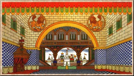 Стиль этот получил название "билибин-ский", сделался популярным и породил нс-мало подражаний. Сам художник перенес его из иллюстраций к сказкам в журнальную и промышленную графику (открытки, рекламные плакаты, календари и пр.), а также в политическую карикатуру, которой занимался в годы первой русской революции. Его же он использовал и в своих театральных работах, тем более что Билибину предпочитали заказывать декорации к спектаклям на темы русских сказок или русской старины. Правда, первой его работой в театре были декорации к средневековому мираклю "Действо о Теофиле" (1907). Затем он оформил оперные спектакли "Золотой петушок" (1909) и "Садко" (1914) Н. А. Рим-ского-Корсакова, "Руслан и Людмила" М. И. Глинки (1913) и стал признанным театральным художником.