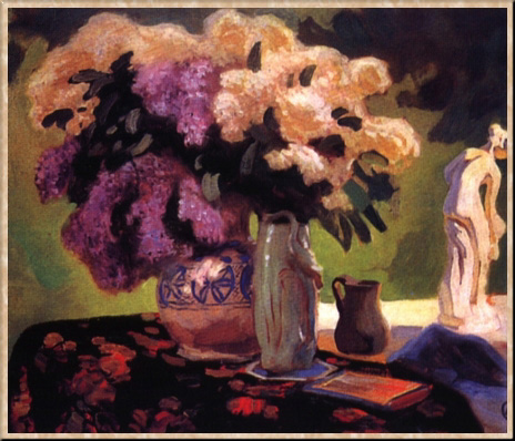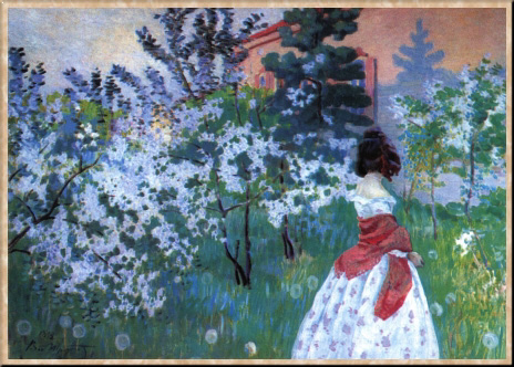 Правда, в том же 1904 г. Борисов-Мусатов получил заказ на четыре росписи для богатого особняка. Исполнение заказа могло помочь не только как-то поправить материальное положение, по и реализовать наконец тяготение художника к монументально-декоративной живописи, которое все более явственно проступало в его станковых вещах. Предложенную тему "Четыре времени года" он трактовал очень своеобразно, продолжив начатое в прежних работах, даже используя полюбившиеся ему мотивы и детали, но подчинив их совершенно новому композиционному решению. Акварельные эскизы, исполненные им, обещали незаурядное произведение, однако росписи не были осуществлены по неизвестным причинам. Вскоре художник вновь переменил местожительство, переехав в Тарусу, где провел последние месяцы жизни. Работал он так же напряженно, как и раньше: создал несколько превосходных пейзажных этюдов, ставших вехами в русской пейзажной живописи, и почти закончил картину "Реквием", намечавшую в его искусстве постепенный поворот к новой стилистике. Но сердце художника не выдержало нагрузки. Борисова-Мусатова похоронили на берегу Оки, в месте, которое он сам указал незадолго до смерти. Позднее на могиле поставили памятник работы его друга, А. Т. Матвеева, с изображением спящего мальчика.