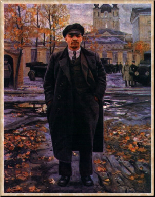 Однако после 1917 г. Бродский резко изменил направление работы и стал родоначальником официозного искусства, задолго предвосхитив его расцвет в 1930-е и последующие годы. Картина "Ленин и манифестация" (1919) положила начало серии претендующих на документальность работ, посвященных вождю пролетариата, среди которых наибольшую известность приобрела картина "Ленин в Смольном" (1930). Вслед за громадным (150 персонажей) полотном, изображавшим открытие II конгресса Коммунистического интернационала (1920-24), было написано другое - "Расстрел 26 бакинских комиссаров" (1925).