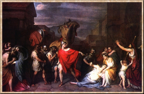 Ф. А. Бруни - сын швейцарского итальянца, "мастера живописного и скульптурного дела", который в 1807 г. переехал с семьей в Россию. В 1809 г. Федор Бруни был принят в Воспитательное училище при Петербургской АХ, затем учился в классе исторической живописи у А. Е. Егорова и В. К. Шебуе-ва; закончил АХ в 1818 г. Весной 1820 г. по приглашению княгини 3. А. Волконской отправился в Италию, там много и серьезно работал и рано приобрел известность. Крупный успех принесла ему картина "Смерть Камиллы, сестры Горация" (1824). В этом образцовом по строгости стиля произведении классицизма обнаружились некоторые черты, роднящие художника с искусством романтизма. Черты романтизма проступали и в других работах Бруни - в "Портрете 3. А. Волконской в костюме Танкреда" (1820-е), а особенно в картине "Вакханка, поящая амура" (1828), отличавшейся радостной чувственностью. Художник мог двигаться дальше по этому пути, обогащаясь тем новым, что принес романтизм, но Бруни остался на позициях академизма.