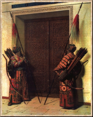В 1867-69 гг. Верещагин добровольно служил в Туркестане, в пограничных войсках, и участвовал в походах под начальством генерала К. П. Кауфмана. Проявив храбрость при обороне Самарканда, он получил высшую боевую награду - Георгиевский крест. Несмотря на военную обстановку и связанные с нею трудности, Верещагин находил время для занятий искусством. Рисунки и этюды, исполненные им в эти годы, легли в основу его знаменитой "Туркестанской серии", в которой особой остротой отличаются картины "Торжествуют" и "Представляют трофеи" (обе 1872): празднующие победу мусульмане демонстрируют отрубленные головы русских солдат. "Из Туркестана он воротился живописцем войны и потрясающих трагедий, живописцем такого склада, какого прежде еще никто не видывал и не слыхивал ни у нас, ни в Европе", - писал о художнике В. В. Стасов.