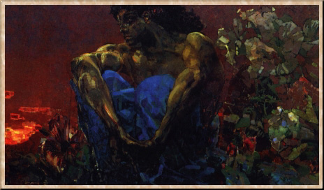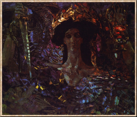 Выросший в семье военного юриста, Врубель получил прекрасное образование. Рисованию его обучали с детства, однако полностью он посвятил себя искусству лишь по окончании юридического факультета Петербургского университета в 1880 г. Осенью того же года Врубель был зачислен студентом АХ. Важнейшим событием академических лет стала встреча с П. П. Чистяковым: занятия у него (с 1882 г.) сформировали изобразительный язык Врубеля, обеспечив необычайно быстрый рост мастерства. Аналитический метод учителя счастливым образом совпал с тончайшей пластической восприимчивостью ученика. Не случайно Врубель свидетельствовал, что основные положения Чистякова оказались для него не чем иным, как "формулой" его "живого отношения к природе". Согласно чистяковскому принципу, форма как бы "высекается" из пространства, определяясь сначала по общим касательным плоскостям, или "планам", а затем по все более мелким, вплоть до исчезновения плоскости в точке. Соответственно, контуру, как таковому, здесь нет места. Отсюда происходит "странная" техника Врубеля, означающая бесконечность стремления к аналитическому исчерпанию видимой формы. В ранний, академический период творчества Врубель поглощен штудиями натуры, добиваясь особенно многого в акварелях ("Автопортрет", 1882; "Натурщица в обстановке Ренессанса", 1883; "Старушка Кнорре за вязанием", 1883, и др.). Одновременно он пробует силы в станковой картине ("Гамлет и Офелия", 1883-84), а чуть позднее - и в монументальной живописи (росписи и иконостас Кирилловской церкви в Киеве, 1884-85). Уже в эти ранние годы Врубель решительно противопоставляет "культ глубокой натуры" передвижнической журналистике. Несколько месяцев, проведенных в Венеции, сильные впечатления, связанные с искусством средневековья и раннего Ренессанса (Чима да Конельяно, Дж. Беллини) разбудили мощный дар Врубеля-колориста. По возвращении в Россию он возобновил работы в Киеве. О силе, которую обрела его палитра, свидетельствуют "Восточная сказка" и "Девочка на фоне персидского ковра" (обе 1886). В замечательных графических этюдах цветов, относящихся к киевскому периоду, оформляется единственный в своем роде "кристаллообразный" стиль Врубеля. Отсюда протягивается линия к поздним поискам мастера, когда его увлеченность возможностями фактуры заходила столь далеко, что он даже готов был отказаться от красок. Подлинные шедевры композиционного мастерства - эскизы' неосуществленных росписей "Надгробный плач" и "Воскресение" (1887) для Владимирского собора в Киеве, сопоставимые с библейскими эскизами А. А. Иванова; это восхождение по стопам великого предшественника к изобразительным принципам христианского средневековья, где особую роль сыграла В изантия, наследница древнеэллинской художественной культуры. В те же годы Врубель начал работать над образом Демона. Киевский период обозначил сложение основных стилистических черт и мотивов врубелевского творчества. Тяготение художника к причудливому и фантастическому, дающее знать о себе в сю-жетике его произведений, нередко заслоняло в глазах современников истинные ценности искусства Врубеля. Между тем наиболее поразительны в его творчестве откровения природы, фантастична глубина его проникновения в реальность, перед которой отступает самое прихотливое воображение. Однако оценить это смогли немногие. 1890-е гг. 