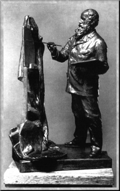 Сын писателя, будущий скульптор И. Я. Гинцбург еще в детстве, живя в Вильно, увлекся вырезанием из точильного камня различных предметов и фигурок. Первые работы мальчика увидел и по достоинству оценил М. М. Антокольский, приехавший в Вильно в 1870 г. С тех пор началась учеба Гинцбурга у известного скульптора, переросшая затем в творческое сотрудничество и дружбу, которая продолжалась до смерти Антокольского в 1902 г. В мастерской учителя в Петербурге и под его руководством Гинцбургом были исполнены орнаменты на троне статуи "Иван Грозный" Антокольского. Позднее Гинцбург выполнил бюст К. К. Гроота для памятника последнему по проекту Антокольского и ряд других работ. Облик учителя и друга был запечатлен уже зрелым скульптором в портретных статуэтках (например, "М. М. Антокольский у станка", 1897) и в бронзовом бюсте (1907). Гинцбург же стал автором надгробия Антокольскому (1909). Под значительным влиянием Антокольского сложился и творческий метод Гинцбурга, отличающийся точностью наблюдений, тщательностью трактовки деталей.