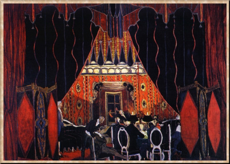 В предреволюционное десятилетие Головин сотрудничал главным образом с выдающимся режиссером-новатором XX в. В. Э. Мейерхольдом, который нашел в нем идеального соавтора в осуществлении принципа "чистой театральности". Начало их сотрудничеству положил спектакль "У врат царства" К. Гамсуна (Александрийский театр, 1908); затем были поставлены "Дон-Жуан" Ж.-Б. Мольера (Александрийский театр, 1910) и опера "Орфей и Эвридика" К. В. Глюка (Мариинский театр, 1911), оформленные в духе так называемого традиционного театра, где стилизаторское воскрешение старых сценических средств и приемов использовалось для решительного обновления театральной эстетики. Их совместные работы в большинстве своем стали событиями истории отечественного театра. В спектакле Александрийского театра "Гроза" (1916) по пьесе А. Н. Островского, трактованной не как бытовая, а как национально-романтическая драма, действительность представала словно увиденной через восприятие возвышенной души героини. В опере А. С. Даргомыжского "Каменный гость" (Мариинский театр, 1917) в изображении Испании художник шел от романтизированных представлении об этой стране, выраженных в подчеркнутой символике цвета и орнаментального декора. Венцом творческого содружества Головина и Мейерхольда был спектакль по драме М. Ю. "Лермонтова "Маскарад", над которым они трудились в Александрийском театре несколько лет. Его премьера, состоявшаяся 25 февраля 1917 г., прозвучала мрачным реквиемом уходящей в прошлое России. Здесь чрезвычайно сложное и торжественное оформление составляло органическую часть полуфантастического театрального действия - роскошного и пугающего. "Маскарад" Головина завершил целую эпоху русской сценографии, подготовив ее выход на новые рубежи в следующем десятилетии.