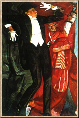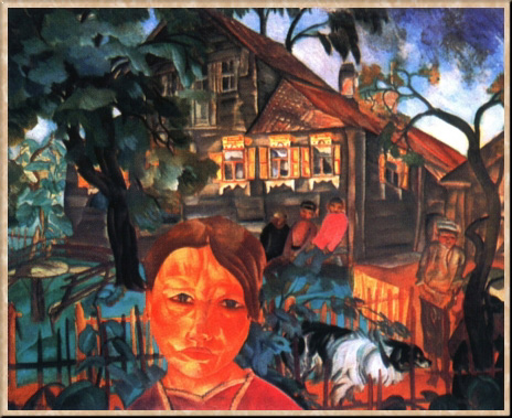 В 1919 г. Григорьев уехал из России. Его путь лежал через Финляндию в Германию, Францию, Америку. В 1927 г. он был приглашен в Чили на должность профессора Академии художеств; правда, из-за правительственного переворота приглашение было отменено, но в 1936 г. последовало вновь. В 1927 г. художник построил дом во Франции, недалеко от Ниццы, где в 1930 г., вернувшись из длительной поездки по Латинской Логическим продолжением цикла "Расея" стала галерея портретов русской интеллигенции. Художник писал их на родине и в эмиграции. Ему охотно позировали многие видные деятели русской культуры, ученые, политики: В. Э. Мейерхольд (1916), М. В. До-бужинский (1917), Ф. И. Шаляпин (1918, 1921-22), Л. Шестов (1921), Е. К. Брешко-Брешковская (1921), М. Горький (1926), С. А. Есенин (1921), А. Ф. Керенский (1924), С. В. Рахманинов (1930), актеры МХАТа (1923) и др. В этой галерее наиболее известны два портрета - В. Э. Мейерхольда и М. Горького. Мейерхольд, театральный режиссер-новатор, чья эксцентричная система создания образа строилась на гротеске, выразительности жеста, силуэта, антуража, был в этом близок художнику; даже само позирование для портрета Мейерхольд превратил в творческий процесс. Причудливо изломанный силуэт фигуры режиссера, очень точно передающий его пластику, - результат поисков в рисунках, которых Григорьев всегда делал великое множество для каждого портрета. В этом портрете ему удалось дать образ неоднозначный, как сам Америке, трудился над большой картиной "Лики мира", посвятив ее Лиге Наций, Позднее это полотно было приобретено столицей Чехословакии.