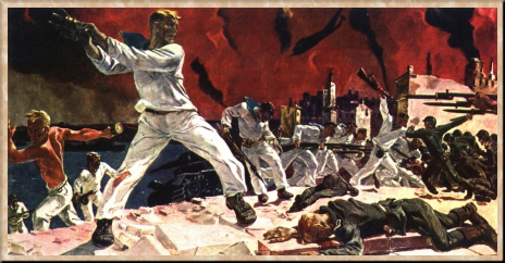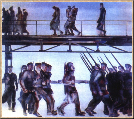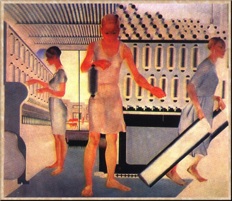 Картины А. А. Дейнеки как бы воплощают пафос советской истории 1920-30-х гг., ее наглядные лозунги и призывы. Радость от торжества индустриализации и прогресса техники, вера в здоровый дух в здоровом теле - это ощущение мира отразилось в его живописи и графике с абсолютной полнотой и достоверностью.
