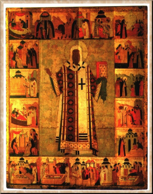 Кисти Дионисия принадлежали также житийные иконы святых Кирилла Белозерско-го, Димитрия Прилуцкого и др. Тип житийных икон, когда в центре доски, в среднике, помещалась фигура избранного святого, а по сторонам ее окружали клейма: небольшие, забранные в рамки композиции на сюжеты из жизни и чудесных деяний праведника были широко распространены в древнерусской живописи.