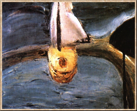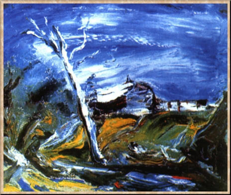 Немного позднее, в полотнах "Уральского цикла" (1926-29), художник уходит от внешней экспрессии начала 1920-х гг. к внутренней сдержанности, упругой насыщенности цвета. Но в полную силу Древин заявляет о себе как о зрелом мастере в следующем живописном цикле, выполненном по впечатлениям от поездки в 1930 г. на Алтай и в Восточный Казахстан. "Алтай особо повлиял на меня своей красочной природой, большими пространствами; его необыкновенная сила света изменила мою живопись", - отмечает Древин в "Автобиографии". Именно в этом необжитом краю художник пережил полное единение с природой. Нерасчленимость видения природы и ее воплощения на холсте сказывается в уникальной технике живописца, который не "срисовывает натуру", а как бы воссоздает ее густо наложенными красками. Цвет в этих картинах не ярок, но весом и плотен, детали отсутствуют - они поглощаются красочными пластами. Узнаваемость мотива сводится к минимуму. Композиции предельно просты, но при этом монументальны Ценность живописи "Алтайского цикла" в мягком, чуть вибрирующем свечении красочной поверхности, в ее фактурном и пластическом богатстве, в цельности живописного пространства картин ("Косуля", 1930; "Пейзаж с белым домом", "Быки", обе 1931; "Барка", "Спуск на парашюте", обе 1932).
