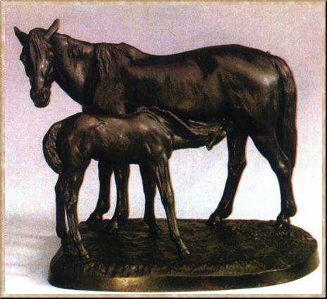 Современники Клодта высоко ценили его пластику малых форм - небольшие статуэтки, изображающие животных, особенно любимых скульптором лошадей. Он умел передать индивидуальный характер каждого животного; это настоящие портреты, выполненные проникновенно, с чутким вниманием и неподдельным уважением: "Лошадь на водопое" (б. г.), "Кобыла с жеребенком" (1854-55), "Конь, скачущий галопом", "Жеребенок" (обе б. г.) и др. Благодаря новому отношению к образам животных Клодту удалось придать совершенно иной качественный уровень анималистическому жанру в русской скульптуре, поднять его значение, вывести на путь самостоятельного развития. "Он сильнее всех... - писал современник, - указал на природу; он поднял ее из того унижения, в котором находилась она перед признанными образцами. Этой деятельностью была начата та дорога от природы, по которой <...> идут теперь наши реалисты".