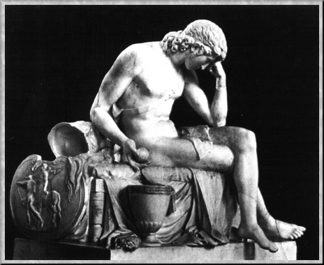 Столь же сложный аллегорический смысл имеет и другая мраморная статуя, выполненная Козловским во второй половине 1780-х гг., - "Бдение Александра Македонского". Образ античного героя послужил скульптору для воплощения нравственных идеалов эпохи Просвещения - воспитания твердой воли и стремления к знаниям. Композиция и общее пластическое решение статуи проникнуты духом "спокойного величия и благородной простоты", все отличается строгостью и соразмерностью, все построено на плавном перетекании контуров и форм. Тело юноши охвачено дремотным оцепенением, мускулатура как бы "притушена" тончайшей пленкой матового покрова мрамора, голова склонилась к руке, опирающейся на колено... Но спокойствие обманчиво.