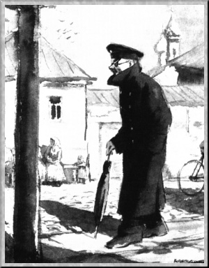 И в книжной графике художники начинают с образов иронических и гротескных. Они дважды иллюстрировали "12 стульев" Ильфа и Петрова (1933 и 1967), нодчеркивали сатирическое начало в рисунках к "Жизни Клима Самгина" М. Горького (1934); в свойственной им подвижно-броской манере журнальной карикатуры со смешными преувеличениями набрасывали образы героев М. Е. Салтыкова-Щедрина ("История одного города", "Господа Голов-левы", "Сказки", 1937-39), а вслед за ними и персонажей Н. В. Гоголя ("Мертвые души", 1938). Несколько иначе подошли художники к рассказам А. П. Чехова (начало 1940-х): теперь они рисовали черной акварелью, тщательно передавали обстановку, реальную среду, благодаря чему образы-маски чеховских героев осмысливаются менее однозначно. Интерес художников все больше смещается к лирической и психологической прозе. В 1945-46 гг. они проиллюстрировали небольшой рассказ "Дама с собачкой" таким количеством рисунков, что получилось целостное зримое повествование, передающее не только сюжет, но и все психологические оттенки отношений его героев. В листах, то выбеленных ялтинским солнцем, то сумеречных, благодаря мягким тональным переходам черной акварели создается кинематографически достоверное ощущение совершающихся на глазах зрителя событий.