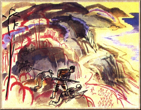 На рыбных промыслах Каспия он рисовал и писал текучей, прозрачной акварелью закутанных в струящиеся ткани стройных азербайджанок с детишками на руках и лоснящихся розово-бирюзовых рыбин (серия "Путина", 1930-31). Его графический дневник этой поездки, полный остро схваченных на лету экзотических для северянина впечатлений кавказской природы и быта, был издан целиком в виде книги (1937) уже посмертно - Купреянов утонул, купаясь в подмосковной речке.