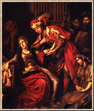 В 1773 г. Лосенко начал, но не успел закончить вторую свою историческую картину - "Прощание Гектора с Андромахой"; этим отчасти объясняется некоторая эскизность в живописной трактовке образов. Античный сюжет из "Илиады" Гомера воспевал героев, их патриотические чувства, готовность принести себя в жертву служению родине. Эти высокие идеалы классицизма, которым художник был верен в течение всей своей творческой жизни, получили яркое выражение в "Гекторовом прощании" (как называли картину современники). Сын троянского царя Приама прощается перед сражением со своей верной женой Андромахой, держащей на руках грудного ребенка. Предчувствие трагического исхода пронизывает патетическую сцену, представленную художником. Однако подлинно патетичен лишь главный герой - Гектор, в образах всех остальных персонажей Лосенко соединяет сдержанно-величавое и естественно-суровое начало, гармонически организуя композицию и жаркий колорит картины.