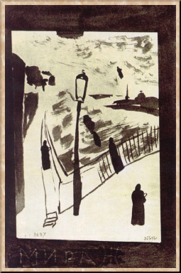В 1917 г. Мансуров выполнил декорации и костюмы для петроградского артистического кабаре "Привал комедиантов". В первые дни октябрьского переворота он явился к А. В. Луначарскому и предложил представителю новой власти себя в качестве художника. Этот решительный поступок во многом определил в ближайшем будущем связующую роль Мансурова между художественным авангардом и Наркомпросом, который возглавлял Луначарский. В. Е. Татлин, К С. Малевич, М. В. Матюшин, П. Н. Филонов - такие разные в своих теоретических творческих установках - тепло относились к молодому художнику. В долгих спорах с ними рождались его собственные концепции. Вслед за Татлиным Мансуров начал работать на доске, используя ее фактуру как выразительное средство в своих композициях. В 1919 г. он ассистировал Татлину в работе над проектом знаменитой "Башни" - памятника III Интернационала. Идеи "отца русского конструктивизма" об утилитарной экономичности создаваемых форм были созвучны Мансурову, однако в дальнейшем урбанизм конструктивистов оттолкнул его. Художник испытал и сильное влияние супрематизма К. С. Малевича, но уже в 1922 г. пришел к выводу, что активное воздействие на зрителя оказывают не только плоские, но и объемные геометрические формы. Важную роль для него сыграла концепция пластического пространства М. В. Матюшина. Молодого художника поражала и тщательная "сделанность" картин П. Н. Филонова, у которого он заимствовал и сам термин "живописная формула" для обозначения многих своих композиций.