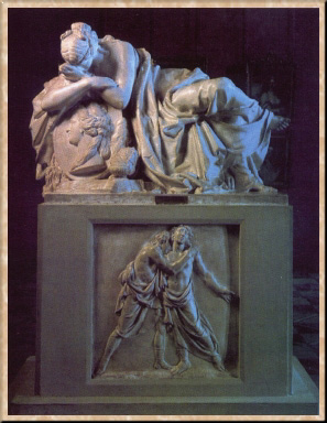 Мартос учился в АХ (1764-73) у Н.-Ф. Жилле, стажировался в Риме (1773- 79), изучал технику рубки в мраморе у итальянского скульптора К. Альбачини. Первое из известных произведений Мартоса - бюст дипломата графа Н. И. Панина (1780) -исполнено в традициях древнеримского портрета, что не характерно для раннего периода творчества скульптора. Его лучшие произведения тех лет проникнуты светлым ощущением гармонии мира, свойственным греческой скульптуре. Мартос создал целое направление в русской мемориальной пластике конца XVIII в., отличающееся глубиной интимных переживаний. Лирический талант Мартоса наиболее полно раскрылся в надгробиях С. С. Волконской, М. П: Собакиной (оба 1782), Е. С. Куракиной (1792), выполненных в традициях раннего классицизма. Тонкая одухотворенность, чувство просветленной скорби придают особую нежность печально склоненным фигурам плакальщиц. Сложные многофигурные композиции объединены соразмерностью пропорций и живой, естественной согласованностью ритмов.
