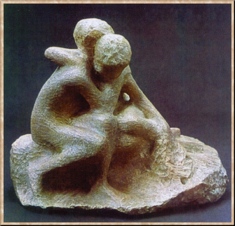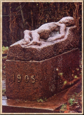 В 1910-12 гг. Матвеев создает одно из самых одухотворенных произведений русской мемориальной пластики - надгробие рано умершему живописцу В. Э. Борисову-Мусатову - художнику тонкому и поэтичному. Глубокая печаль воплотилась в распластанной, будто раненая птица, фигурке мальчика, вырубленной в граните. Певучий ритм произведения созвучен мерному течению реки Оки в Тарусе, где похоронен художник.