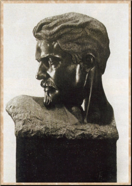 Вернувшись в Россию, Меркуров работал над портретами русских писателей и ученых. Скульптора особенно привлекал твердый материал - гранит, диктующий обобщенную монументальную форму, монолитные объемы. В граните он выполнил статуи Л. Н. Толстого (1913), Ф. М. Достоевского (1911-13), символическую фигуру "Мысль" (1913). А в 1922-23 гг. он вновь использовал гранит для скупого, несколько схематично-колоннооб-разного памятника К. А. Тимирязеву.