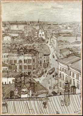 В 1922 г. художник переехал в Москву. Его позднейшие рисунки сближаются с конкретной натурой, в меньшей степени подчиняют ее концентрированной остроте впечатления. Но они сохраняют артистизм смелого штриха, с безукоризненной точностью лепящего пространство и форму; в них все та же свежесть восприятия и живая полнота творческого общения с натурой (серии пейзажей Кисловодска, 1933; Судака, 1937 и 1939; Хосты, 1955; портреты художников-современников).