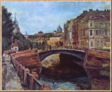Среди тематических картин художника - а он немало потрудился, осваивая этот новый и сложный для него жанр, - более других известна "Красная гвардия в Зимнем дворце" (1927). Однако, несмотря на все усилия, мастером тематической картины Осмеркин так и не стал. Гораздо лучше ему удавались пейзажи, портреты, натюрморты. Над ними Осмеркин много работал и в 1930-40-х гг. Он неизменно сохранял верность принципам свободной, основанной на гармонии цветовых отношений живописи. А это не всегда было легко: художника обвиняли в формализме, в 1948 г. лишили возможности преподавать (с конца 1910-х гг. Осмеркин преподавал в художественных вузах Москвы, а потом Ленинграда). "Портрет А. А. Ахматовой" (1939-40), серия пейзажей "Новая Голландия" (1945) - пожалуй, самые известные работы 1930-40-х гг.