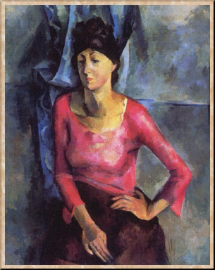 "Дама с лорнеткой", 1917; "Натюрморт с часами", 1918; "В кафе", 1919, и др.). Правда, лубок и "примитивы" имеют для художника меньшее значение, чем для его учителя Машкова. Осмеркина отличают меньший размах, тяготение к более тонкой и сдержанной цветовой гамме, своеобразное чувство ритма и вместе с тем не столь явная увлеченность телесностью, вещностью материального мира.