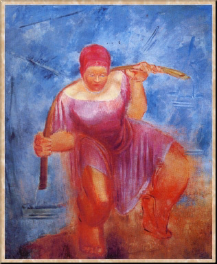 В 1926 г. художник активно включился в создание и творческую жизнь объединения "Круг художников", ставившего своей задачей идти "через картину к стилю эпохи". В 1927-32 гг. был председателем этого объединения. Разрабатывал идею о монументальном начале в искусстве 1920-30-х гг., обращаясь к "истокам" - древнерусской фреске с ее строгой и сдержанной простотой. В 1926-27 гг. работал над своим программным произведением "Жница", вложив в него всю страсть формально-теоретических поисков предыдущих лет. Снабдил живописное произведение манифестом-описанием задач, раскрывающихся в этом полотне. Манифест заканчивался постулатом: "В основе: контроль разума в равной соподчиненности с ассоциациями от природы".