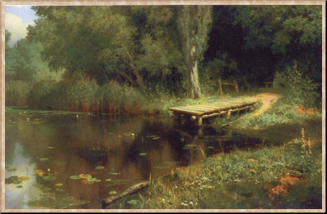 Последующие работы Поленова - "Бабушкин сад" (1878), "Заросший пруд" (1879), этюды 1881-82 гг., выполненные во время поездки в Грецию и на Ближний Восток, - упрочили за ним славу одного из лучших русских пейзажистов. Он, в сознании современников, первым в таком объеме ввел в русскую живопись "европейское влияние" (А. М. Васнецов), то есть принципы пленэрной живописи: чистые и более открытые краски, цветные тени, свободный мазок. В 1882-94 гг. Поленов ведет пейзажный класс МУЖВЗ. Его учениками были И. И. Левитан, К А. Коровин, А. Е. Архипов, А. Я. Головин и другие известные впоследствии мастера.