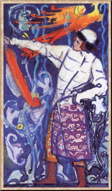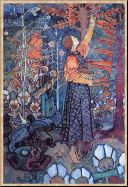 В 1883 г. в Мамонтовском кружке ставили оперу-сказку "Снегурочка", и Поленова нарядила исполнителей в подлинные, привезенные из Тульской губернии, крестьянские костюмы. Увлечение народным искусством вело ее от простого собирания к попыткам возрождения угасающих ремесел. В 1885 г. в Абрамцево были организованы столярные мастерские, где местные крестьяне делали предметы утвари и мебели по рисункам Поленовой и других художников, в свою очередь созданным на основе народных мотивов. В таком же стиле делала художница эскизы для вышивок, обоев и других декоративных изделий. Вкус времени придал этим эскизам несколько манерную плоскостную декоративность, ставшую основой русского национального варианта стиля модерн, формированию которого, несомненно, способствовала деятельность Поленовой.