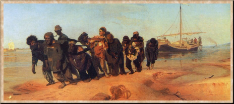 "Бурлаки на Волге" (1870-73) нарушили привычную границу между жанровой и исторической живописью. Репин, воспитанный на эстетических идеалах 1860-х гг. и одновременно прошедший академическую школу, показал пример того, как остросоциальный сюжет может без тенденциозности стать предметом большой картины. Мастерство молодого художника проявилось, в первую очередь, в композиции - классическом фризовом построении группы, напряженности главного движения, умелой организации больших форм. Выразительная психологическая характеристика каждого персонажа сообщает произведению качества "хоровой" картины (термин Стасова). Сопоставление тянущих свою лямку бурлаков с известной евангельской темой, а также с житейским понятием "нести свой крест" дополнено изящной метафорой: мачта, к которой крепится натягиваемый канат, нарочито развернута фронтально и в сочетании с отражением напоминает крест, к тому же увенчанный российским флагом.