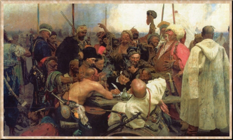 Выражение крайних эмоциональных переживаний человека, таких как безумие, раскаяние, горе, удивление, одержимость, всегда вызывало повышенный интерес Репина. Картина "Запорожцы пишут письмо турецкому султану" (1880-91) посвящена смеху. Его ощущение создано новой, по сравнению с предыдущими репинскими композициями, организацией пространства. Раскатистый хохот, подобно волнам от брошенного в воду камня (рука писца над бумагой), нарастает в фигурах, расположенных вокруг стола, и постепенно затихает на периферии картины.
