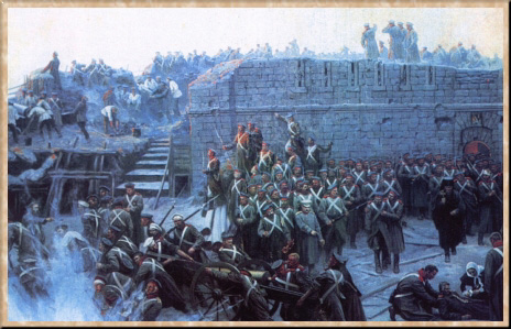 Ф. А. Рубо был сыном мелкого французского коммерсанта. Образование он получил в Одесской рисовальной школе (с 1865), затем в Баварской академии художеств в Мюнхене (1878-83). Талант Рубо был невелик, но целенаправлен и опирался на большое трудолюбие. Еще в студенческие годы у Рубо вошло в привычку совершать дальние поездки по России - на Украину, в Среднюю Азию и особенно часто на Кавказ, собирая обширный этюдный материал, которым впоследствии постоянно пользовался. Начинал он в бытовом жанре, небольшими картинками, чаще всего сценами охоты, но постепенно перешел к батальной живописи. Громкую известность принесли ему в 1880-х гг. 18 больших картин, посвященных эпизодам покорения Кавказа Российской империей и предназначенных для "Храма Славы" в Тифлисе; эту тему он продолжал разрабатывать и в дальнейшем ("Горцы", 1890; "Кавказская разведка", 1895-96; "Штурм Геок-Тепе 12 января 1881 года", "Казаки у горной речки", обе 1898, и др.).