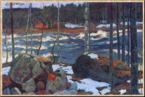 Правда, жизнеутверждающих произведений у художника намного больше: "Жаркий день", "Полевая рябинка", "Островок" (все 1922), "Березовая роща" (1923), "Старые ели у реки" (1925), "Лесная река" (1928), "Домик с красной крышей" (1933), "В зеленых берегах" (1938) и др.