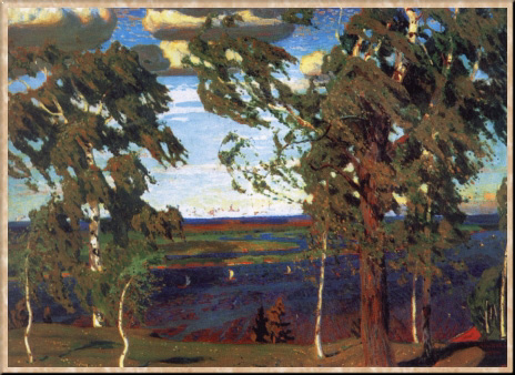 В историю русской живописи А. А. Рылов вошел прежде всего как автор двух прославленных пейзажей - "Зеленый шум" и "В голубом просторе", хотя наследие оставил большое и очень высокого художественного уровня.
