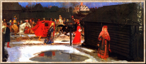 Хрупкий и болезненный, "словно носящий в себе какую-то тайну", "человек большого таланта и больших, скрытых страстей" (М. В. Нестеров), А. П. Рябушкин создал картины, в которых в поэтической форме и со свойственным ему природным чувством декоративности представил быт Древней Руси.