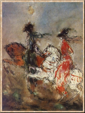 Творчество М. К. Соколова уникально для своего времени. Сын бондаря, ставший художником вопреки воле родных, он не получил систематического образования (в 1904- 07 гг. учился в СХПУ, не закончив его) и не входил ни в одно из художественных объединений. Зато наиболее полно являл образ творца в его самой романтизированной ипостаси. Это выражалось во всем - начиная от нарочито артистической манеры одеваться и кончая декларативной отвлеченностью от актуальной тематики: искусство Соколова почти целиком основано на вечных сюжетах. В живописи это натюрморт и пейзаж, в графике (а графикой он занимался по преимуществу) - циклы "Страстей", изображения циркачей, комедиантов, всадников и прекрасных дам, рисунки по мотивам литературных произведений (В. Гюго, Ч. Диккенса, Э.-Т.-А. Гофмана) и истории ("Французская революция"). После недолгого периода кубистических увлечений (начало 1920-х гг.) Соколов выходит на этот круг сюжетов и остается верен ему до конца. Неизменными остаются и виртуозно-реактивная графическая манера, романтически-взволнованная речь, абсолютное чувство любого материала. Замечаемый серьезной критикой, художник тем не менее все больше ощущает свою невостребованность: работы выставляются редко, подготовленные иллюстрации не печатаются в книгах (исключение - "Орлеанская девственница" Вольтера, "Acadeinia", 1935). Кормит его лишь преподавание: в 1919-21 гг. - в художественных мастерских Твери и Ярославля; в 1923-25-м - в мастерской ИЗО Пролеткульта в Москве; в 1925-29-м. - в Художественно-промышленном техникуме в Ярославле; в 1936- 38 гг. - в Институте повышения квалификации художников-живописцев и оформителей в Москве. Драматический итог судьбы - арест в 1938 г., семилетний приговор, Тайгинский лагерь в Сибири; созданные там рисунки (на крошечных клочках, сыпучим цветным мелом или просто спичкой и чернилами) относятся к лучшим творениям художника. Досрочно освобожденный по болезни (1943), Соколов поселяется в Рыбинске. В июне 1947 г. он приезжает в Москву хлопотать о снятии судимости. Он посещает выставки, строит планы на будущее. Но тяжелая болезнь приковывает художника к постели и вскоре обрывает его жизнь.