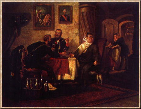 В произведениях "У питейного дома" (1867), "Постоялый двор" (1870), "Пирушка", "За пенсией" (оба 1878) и других художник изобразил мир бедняков и бездомных, доведенных до отчаяния и лишенных надежды. Сам прожив всю жизнь в нужде, он хорошо понимал своих собратьев.