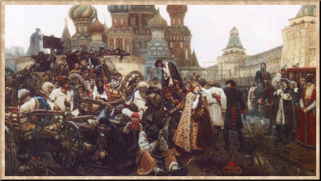 Обратившись к сюжету из петровского времени - казнь стрельцов происходила в 1698 г., - художник использовал дневники очевидца, секретаря австрийского посольства Корба. Однако Суриков переосмыслил этот источник с точки зрения человека, живущего на два столетия позже, когда история расставила свои акценты и вынесла свой приговор участникам давней исторической трагедии.