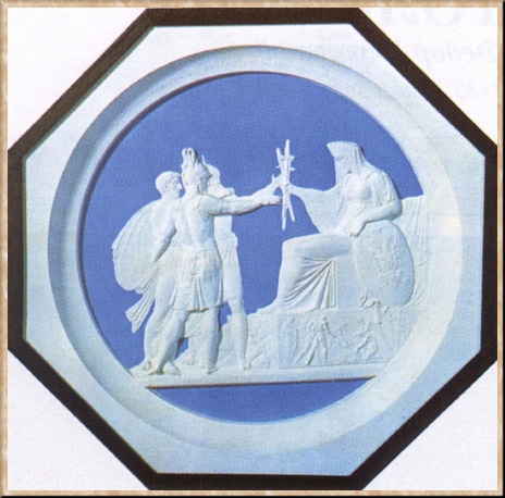 Еще в АХ он занялся лепкой рельефов из воска и создал серию небольших (11х11 см), но выразительных портретов (А. Ф. Дудиной, К. А. Леберехта, П. А. Толстого, автопортрет и др.), а также рельефов на античные темы ("Триумфальный въезд Александра Македонского в Вавилон", 1809, и др.). Успехи его были замечены, и в 1810 г. он получил назначение на петербургский Монетный двор для создания медалей. Толстой в совершенстве изучил и эту специальность, требующую умения на крохотном поле символически передать важную идею, а также владения трудоемкой и сложной техникой. Опыт, приобретенный на Монетном дворе, пригодился Толстому при создании одного из лучших его произведений - серии из 21 медальона, посвященной Отечественной войне 1812-14 гг. На дисках диаметром 16 см были запечатлены в аллегорической форме наиболее важные события этой войны. Медальоны были сделаны из воска на аспидных досках и позднее отлиты в гипсе. Другим капитальным произведением Толстого стала серия иллюстраций к поэме И. Ф. Богдановича "Душенька", перелагающей миф о любви Амура и Психеи (1820-е - начало 1830-х). В этом строгом и поэтичном творении, выполненном уверенной рукой мастера, отрази лось его увлечение античностью. Все 67 рисунков он повторил в гравюре резцом, для чего безукоризненно овладел новой для него техникой. Превосходных результатов Толстой достиг даже в силуэте - технике, распространенной главным образом среди любителей и почти не принимаемой всерьез профессионалами. Она послужила ему для создания сложных сцен народной и армейской жизни, а также батальных эпизодов Отечественной войны.