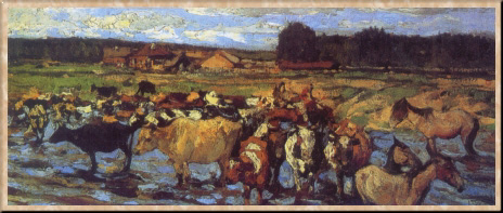 Среди его ранних работ есть и портреты (артистки М. Петровой, писателя И. А. Бунина, оба 1905), и жанровые полотна ("В провинции", 1910), но творческое лицо живописца наиболее ярко проявилось в пейзаже. Еще в годы учебы он показал на выставке ТПХВ цикл работ, написанных во время путешествия по Русскому Северу ("Север. Тихий вечер", "Поморы на промыслах", "У северного берега Мурмана" и др., все 1905), и предстал в них как вполне сложившийся, смелый мастер, по-своему воплощающий поэтическое начало природы. Недаром лучшие из этих пейзажей сразу были приобретены для Третьяковской галереи.