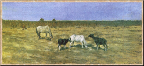Постоянным источником творческого вдохновения для художника была природа родного Урала. Милая его сердцу деревня Малый Исток под Екатеринбургом не отличалась оригинальной красотой, но именно здесь Туржанский черпал свои излюбленные мотивы, питавшие его искусство долгие годы (даже поселившись с 1920 г. в Москве, он каждую весну приезжал в родные края). Художник любил изображать мирную жизнь земли, тишину, в которой слышатся привычные деревенские звуки: "Пашня" (1910), "Осень. Солнце", "К вечеру" (обе 1912), "Этюд. Средний Урал", "Деревенская улица" (обе 1930-е), "Осенняя ночь. Тихо" (1935) и др. Обладая великолепным даром анималиста, Туржанский почти каждый свой пейзаж одушевляет присутствием домашней живности - это куры, телята, козы, а чаще всего - лошади, наделенные каждая своим характером, настроением ("Желтый жеребенок", 1914; "Ранняя весна", "Деревенские лошадки", обе 1910-е; "Вечер. Старая лошадь", б. г., и др.).