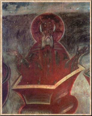 Манера Феофана Грека в иконописи (если согласиться с тем, что иконы деисусного чина Благовещенского собора Московского Кремля написаны Феофаном) значительно отличается от фресковой. Это может быть объяснено спецификой иконописи. Образы деисусного чина внушительны и монументальны. Почти двухметровые фигуры, исполненные внутренней значительности и самоуглубленности, составляют единую композицию, подчиненную одному замыслу - воплотить благодарственную молитву святых Спасу, творцу и владыке небесных сил, и ходатайство их за род человеческий в день Страшного Суда. Эта идея определила иконографическое решение и всей группы в целом, и каждого образа в отдельности. Иконография чина имеет свои истоки в алтарных росписях византийских храмов и теснейшим образом связана с текстами главных молитв литургии. Подобная программа деисусного чина со "Спасом в силах" впоследствии получила распространение в русских иконостасах, но здесь она появляется впервые.