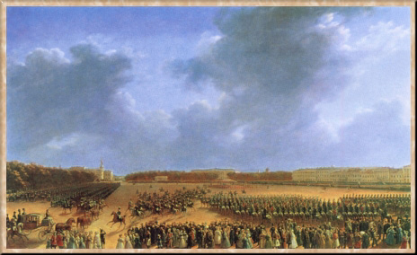 Работа вызвала всеобщий интерес в Петербурге, но не понравилась Николаю I: слишком много внимания уделено зрителям парада и мало - ему самому. Картина простояла несколько лет в мастерской автора, пока ее не купили в дар наследнику престола.