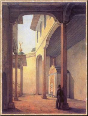 В 1819 г. семнадцатилетний Григорий Чернецов приехал в Петербург поступать в АХ. Его не приняли в число казенных учеников, но разрешили ежедневно по два часа рисо вать с оригиналов. Первые три года в Петербурге Григорий прожил в ужасающей бедности, только на те скудные средства, что присылал ему Евграф. Однако он упорно работал и в 1822 г. получил за свои рисунки малую серебряную медаль. ОПХ назначило талантливому молодому человеку стипендию. В 1823 г. ОПХ приняло под свое покровительство и приехавшего к брату Никанора Чернецова. Учились братья в АХ у пейзажиста М. Н. Воробьева. В 1827 г. они окончили Академию с малыми золотыми медалями за изображения интерьеров Эрмитажа.