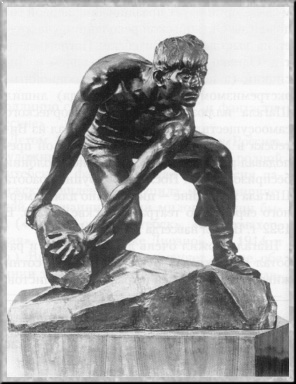 Судьба И. Д. Шадра во многом напоминает судьбу его старшего современника А. М. Горького. Выходец из беднейшей среды (в семье росло четырнадцать детей), одиннадцати лет отданный "в люди", на фабрику, он лишь чудом смог добиться зачисления в Екатеринбургскую художественно-промышленную школу (1902-07). Его учитель, скульптор Т. Э. Залькалн, настоял на том, чтобы ученик продолжил обучение в Петербурге. Не поступив в АХ, Шадр посещал Рисовальную школу при ОПХ (1907-08), одновременно занимаясь на Высших курсах Театрального училища и в Музыкально-драматической школе и, таким образом, выбирая между профессией художника и вокально-сценической карьерой. Тяга к скульптуре победила, и в 1910-12 гг., благодаря финансовой помощи И. Е. Репина и других деятелей русской культуры, Шадр сумел завершить образование в Париже (в академии Гранд Шомьер, на высших муниципальных курсах скульптуры и рисования, пользуясь советами А. Бурделя и О. Родена) и в Риме (в Институте изящных искусств).