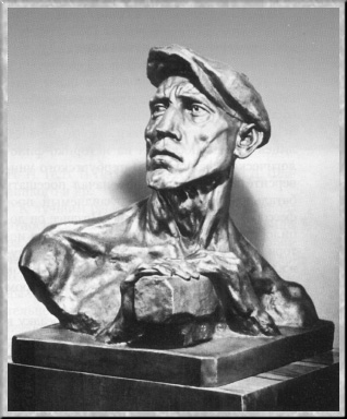 В 1920-х гг. по плану монументальной пропаганды он создает рельефы с изображением К. Маркса, К. Либкнехта, Р. Люксембург, а также исполняет большой заказ на серию круглых скульптур для Гознака - "Рабочий", "Сеятель", "Красноармеец" (все 1922; с них должны были делаться изображения на денежных знаках, марках и облигациях). Реалистическая достоверность и обобщенно-плакатная выразительность этих фигур отвечали складывающимся принципам советской эстетики. Далее наступает длительный период работы над ленинской темой, начатый натурной скульптурой "Ленин в гробу" (1924) и продолженный памятниками Ленину - на Земо-Авчальской ГЭС в Грузии (1925-26), на Ижорском заводе в Ленинграде (1932), в подмосковных Горках (1934). Лучшие произведения рубежа 1920-х и 1930-х гг. - "Булыжник - оружие пролетариата" (1927), "Сезонник" (1929) - не только дают представление об индивидуальной манере художника, но и отчетливо выражают характерные для тех лет тенденции пластики, смысл которых - в передаче символики революционного порыва, пафоса социальных преобразований.
