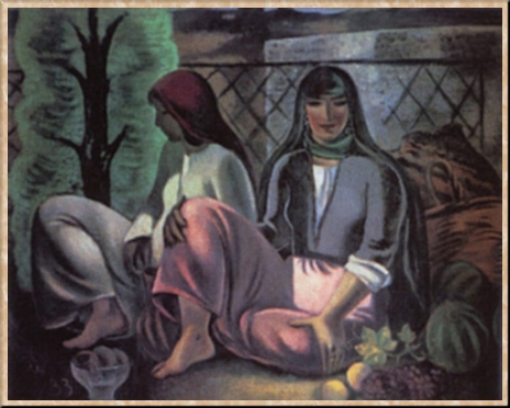 Такое стремление ощутимо уже в ранних его работах. Сезаннизм - ядро и основа построений - откорректирован то легкими кубистическими сдвигами, то примитивистской упрощенностью формы, но не в ущерб гармонической красоте; классический репертуар натюрмортных постановок и пейзажей с фигурами сохраняет свою классичность благодаря абсолютному чувству цветового и пространственного равновесия ("Натюрморт с яблоками", "Пейзаж с домом", 1910-е, и др.). Образы Шевченко отличает просветленность порой идиллическая, - он тяготеет к обобщенной монументальности силуэтов, к певучести ритмов, основанных на повторе круговых движений, к благородству сбалансированного колорита и композиционной ясности ("Музыканты", "Женщина у зеркала", обе 1913; "Автопортрет", 1920-е, и др.). Монументальные тенденции усиливаются в работах 1930-х гг., особенно связанных с ориентальной тематикой: в 1929 г. художник был командирован в Батуми, с чего началось его открытие Востока - Аджарии, Дагестана, Азербайджана; здесь Шевченко нашел свой идеал свободного и безмятежного бытия и запечатлел его в эпических по звучанию картинах, литографиях и монотипиях.