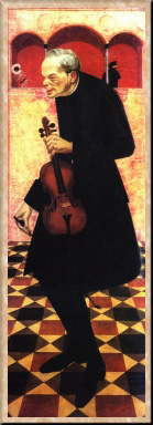 Миновав в ученический период кратковременное увлечение импрессионизмом, Яковлев обратился за вдохновением к классическому искусству. Его конкурсные работы "Купание" и "В бане" (обе 1913) демонстрировали ориентацию молодого художника на искусство старых мастеров. Уже в них обозначилось его тяготение к "неоклассицизму". За эти работы Яковлев получил звание художника и пенсионерскую поездку за границу. 1913-15 гг. он провел в Италии, где изучал старую живопись. Затем побывал в Испании, на острове Майорка. Наряду с огромным количеством натурных этюдов художник выполнил в Италии свой автопортрет в образе Арлекина, который стал частью двойного автопортрета Шухаева и Яковлева. Эту картину художники считали одной из самых серьезных своих работ. Яковлев изобразил себя в театральном гриме и ярком костюме, придуманном художником Н. Н. Сапуновым. Театральности портрета как нельзя лучше соответствуют средства из арсенала старого искусства: точный рисунок, почти скульптурная лепка формы, локальный цвет, некоторый примитивизм, идущий от русского лубка. Элементы стилизации, подражания мастерам итальянского Возрождения или искусству примитива заметны и в других произведениях художника, например в картине "Скрипач" (1915). Эту и некоторые работы, созданные в Италии, Яковлев показал на выставке "Мира искусства" по возвращении в Петроград в 1915 г. Они вызвали шквал самых разнообразных оценок. Совет АХ, в частности, не принял живописные работы художника.