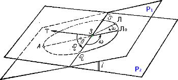 Выше приведена схема, поясняющая геометрический смысл элементов орбиты Луны.