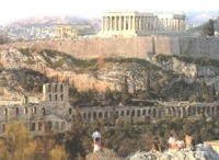 У подножия холма находится театр Диониса V — IV вв. до н. э. и одеон, в котором давались представления с пением и танцами. За последние 100 лет вокруг древнего ядра вырос новый город. В архитектуре его центральной части преобладает неоклассицизм. Выделяются здания Национальной библиотеки, Академии наук и университета. Крупнейший центр севера Греции — Салоники. Город был основан в IV в. до н. э. и назван в честь сестры Александра Македонского. Здесь сохранились отдельные постройки римского времени — арка Галерия и др. От византийского средневековья, когда Салоники (под названием Солунь) были важным экономическим и культурным центром на Балканах, остались базилика Святого Дмитрия V в., церковь Святой Софии V — VIII вв. и др. В самом большом городском соборе Святого Георгия расположен Музей византийского искусства. Салоники — родина славянских просветителей Кирилла и Мефодия. В городе имеется несколько памятников османской эпохи, в основном мечети.