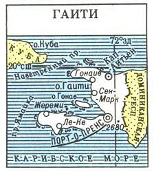 ГАИТИ (Республика Гаити), государство в Вест-Индии, в зап. части острова Гаити и на близлежащих островах. Пл. 27,8 тыс. км2. Население 6,7 млн. чел., гаитийцы (в осн. негры). Официальные языки - французский, гаитянский креольский. Верующие - гл. обр. католики. Глава государства - президент. Законодательный орган - двухпалатный парламент. Столица - Порт-о-Пренс. Адм.-терр. деление: 9 департаментов. Денежная единица - гурд.